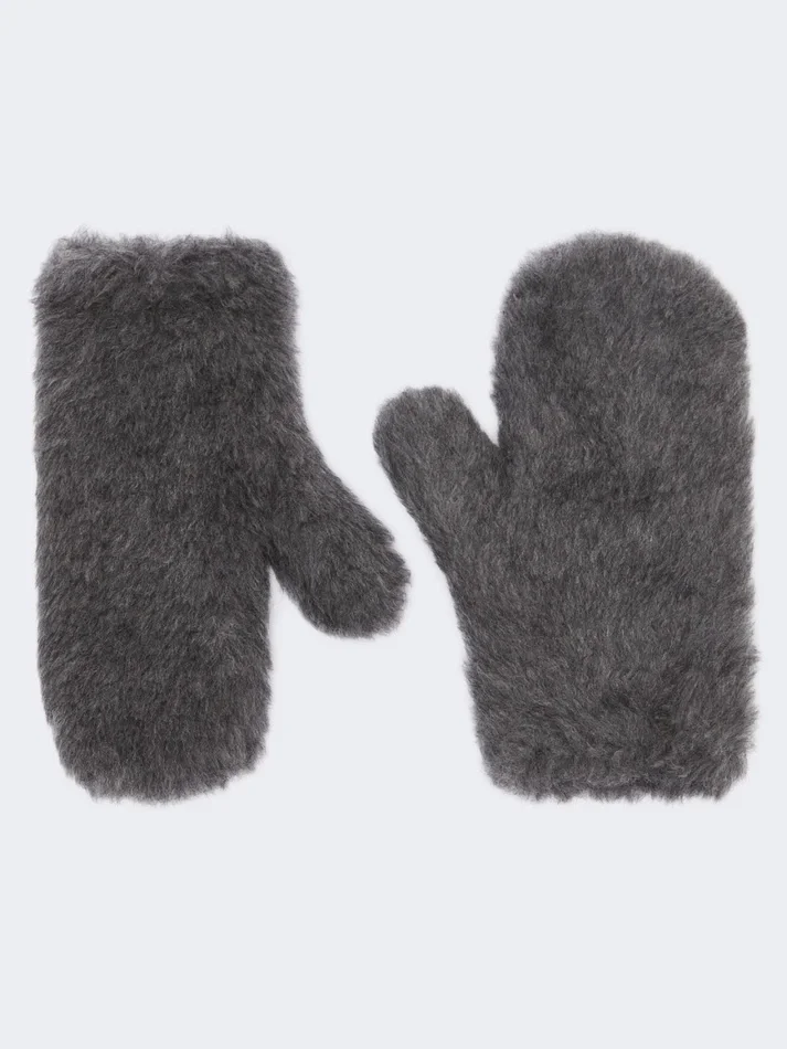 - mittens in wool and alpaca teddy fabric, set on a silk base