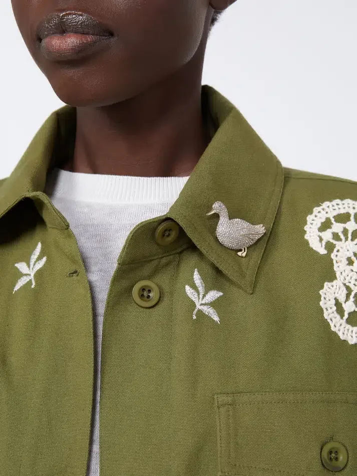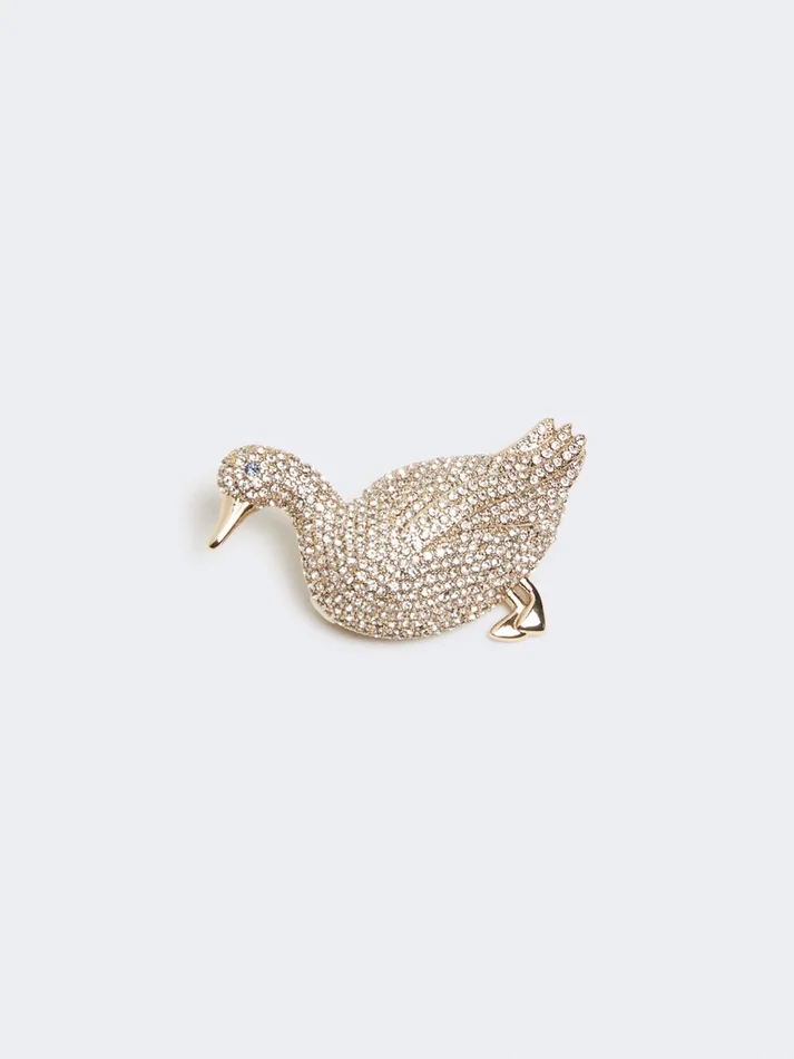 shaped brooch, embellished with glass rhinestones set all over.