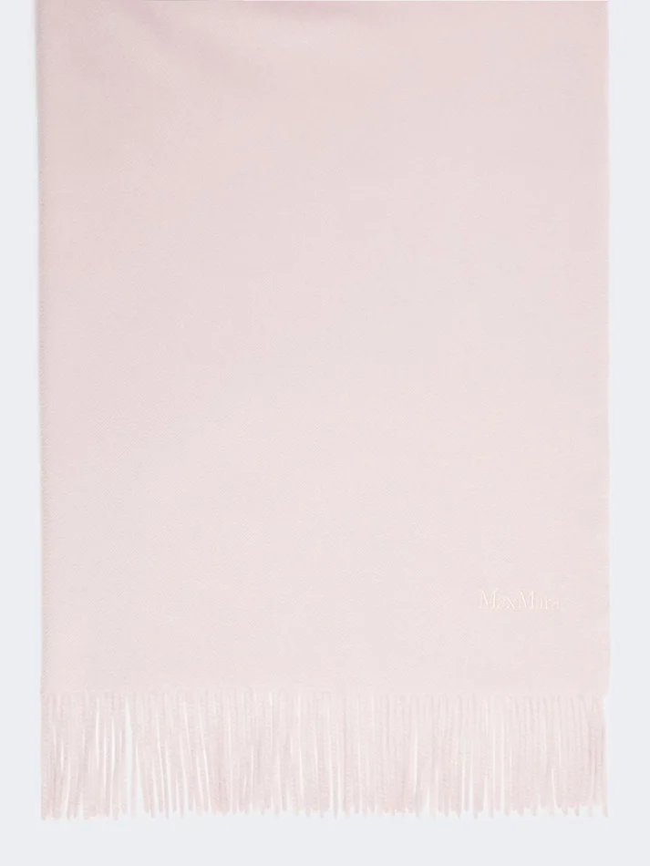 the distinctive monochromatic design of this stole is embellished with subtle tone-on-tone embroidered max mara lettering detail at the hem.