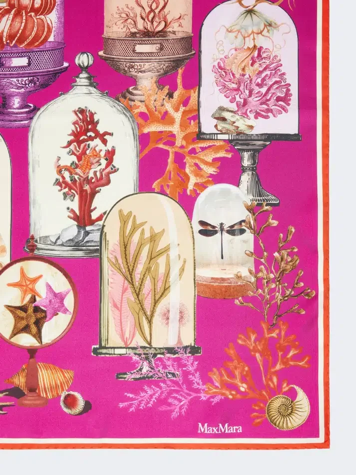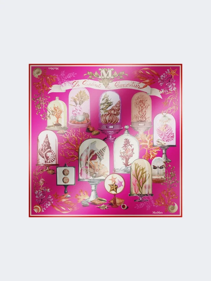 oversized square scarf with cabinets of curiosities collection motif printed all over.