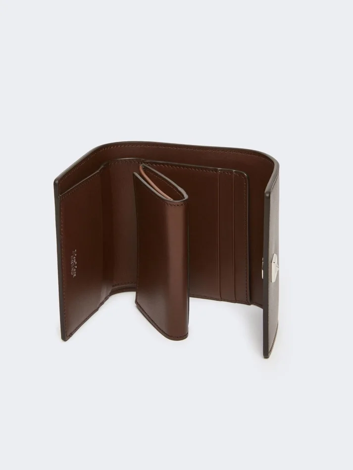 square-shaped tri-fold wallet customised with max mara lettering on the back and max mara-branded metal pyramid button fastening.