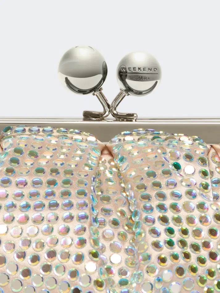 • satin bag featuring all-over heat-sealed pava rhinestone detail