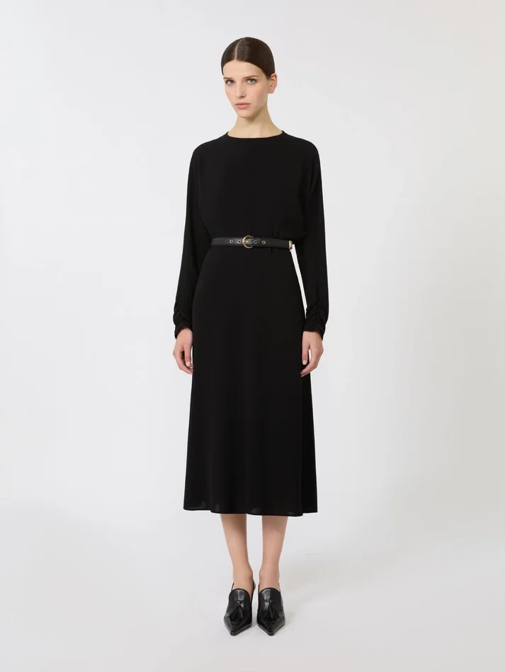 midi dress with a fluid, feminine silhouette.