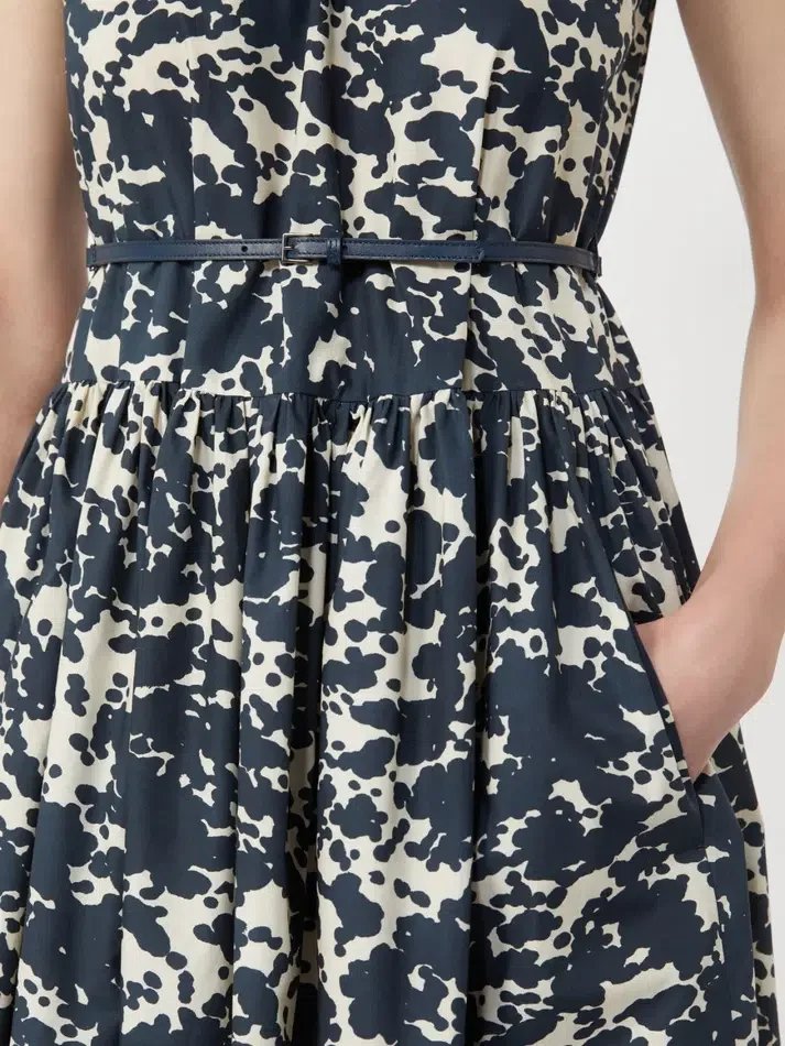 sleeveless midi dress featuring a seam below the waistline and a full skirt.