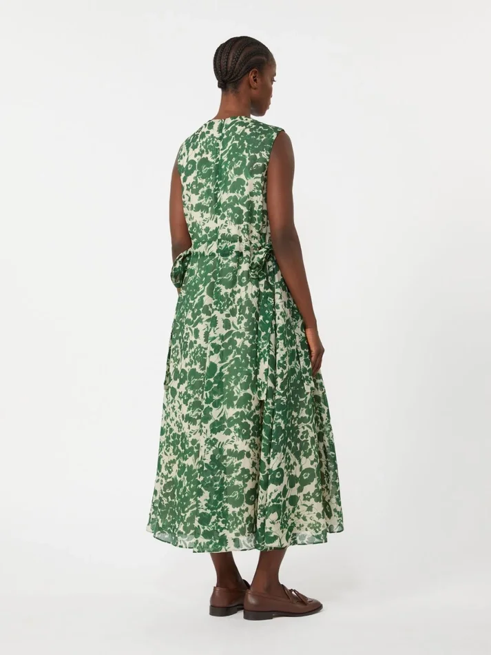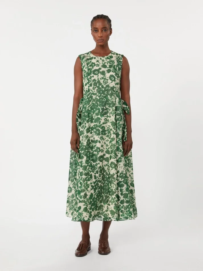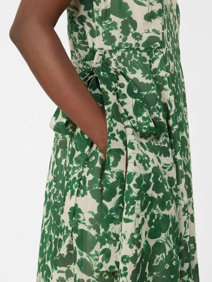 Printed ramie canvas dress, green
