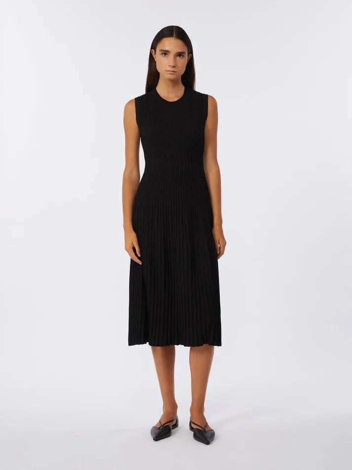 fit & flare midi dress, featuring a ribbed knit inspired by the movement of pleated fabrics.