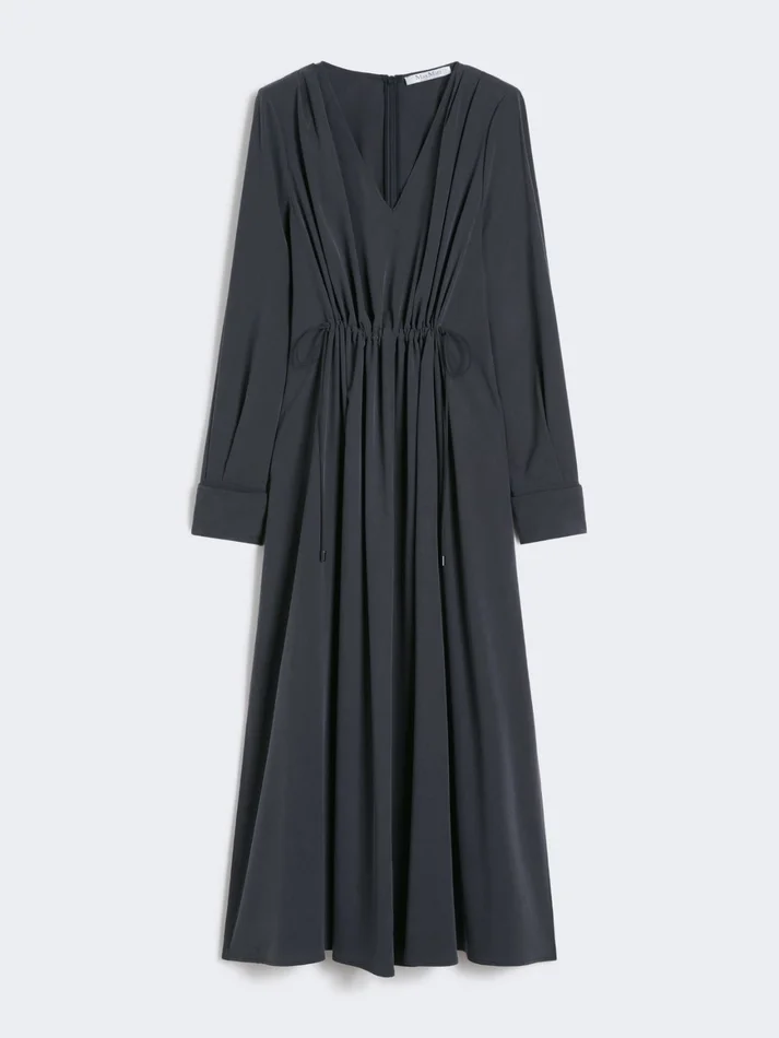 long dress featuring silhouette-accentuating adjustable drawstring detail on the front and back of the waist.