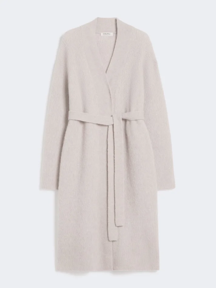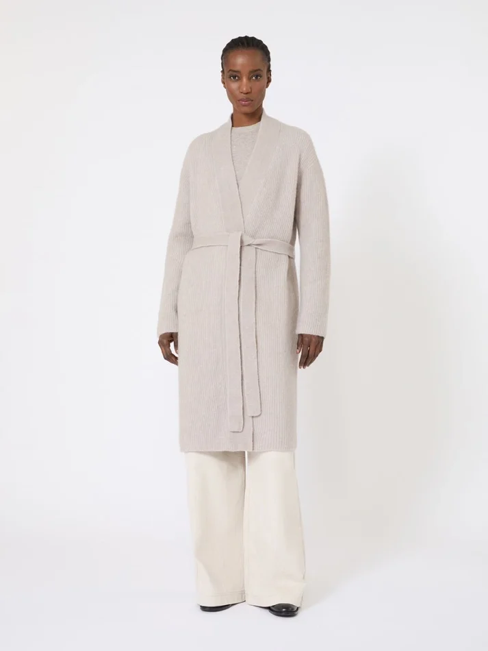 Long alpaca and wool cardigan, sand