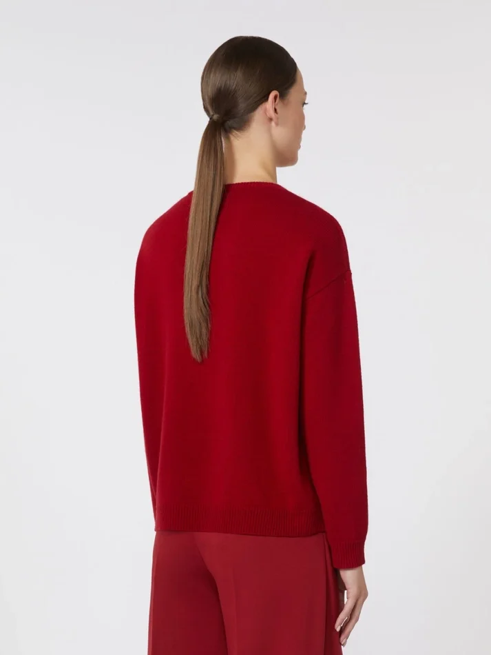 the front of this iconic max mara sweater is customised with sequin and rhinestone-embroidered m monogram detail.