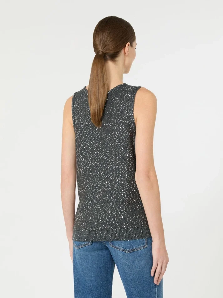sleeveless jumper embellished with sequin embroidery on the front and back.