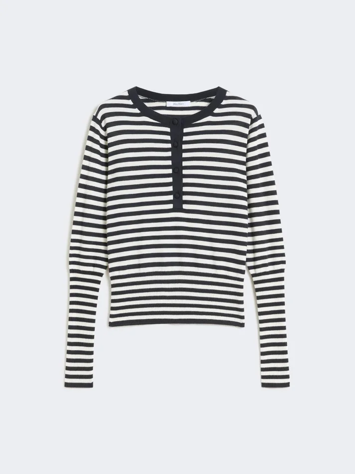 • crew-neck with 4 knit fabric-covered buttons on the front