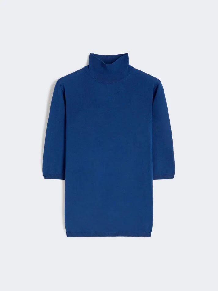 Be the first to review “Stockinette-stitched wool polo-neck sweater, china blue”