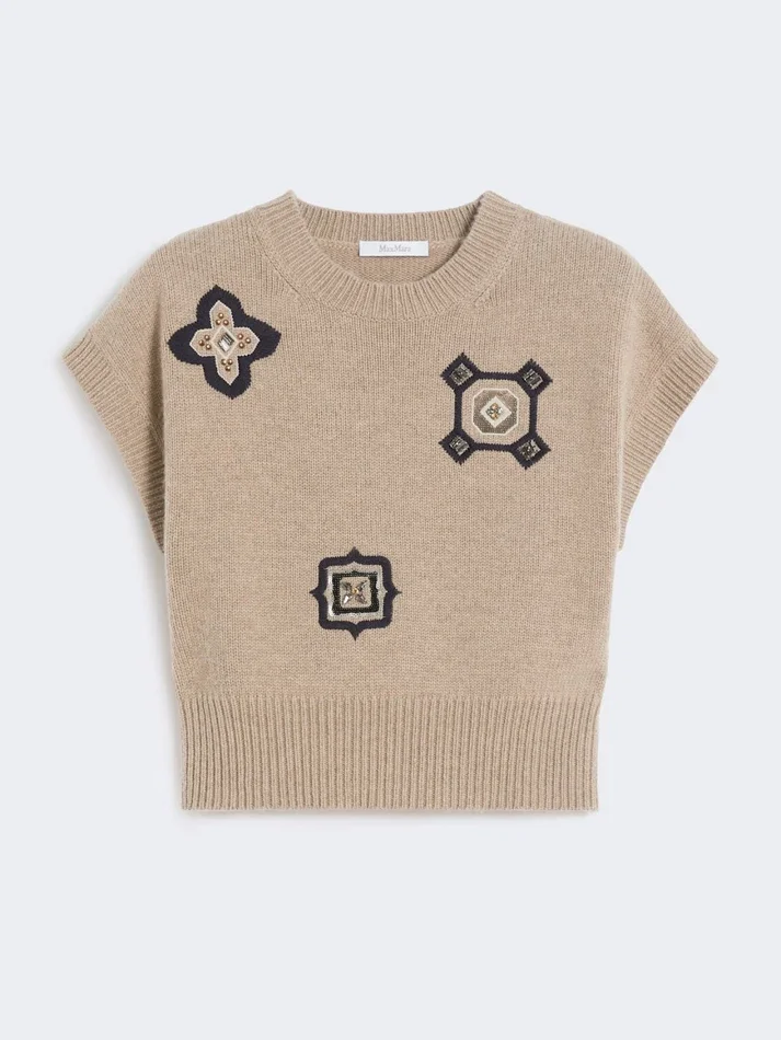 cropped sweater decorated with sequin and rhinestone-embroidered detail.