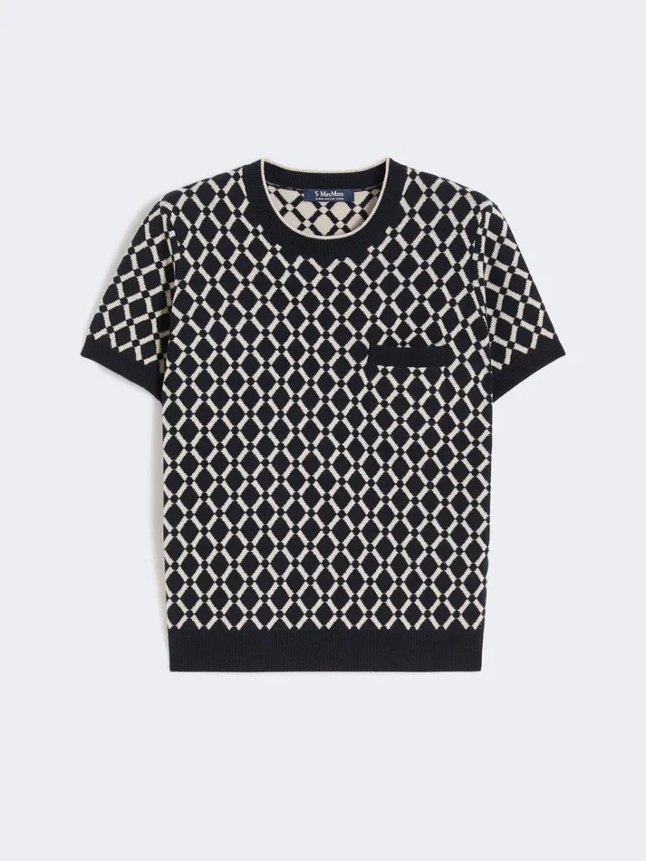basic jumper embellished with a jacquard depicting an all-over geometric design.