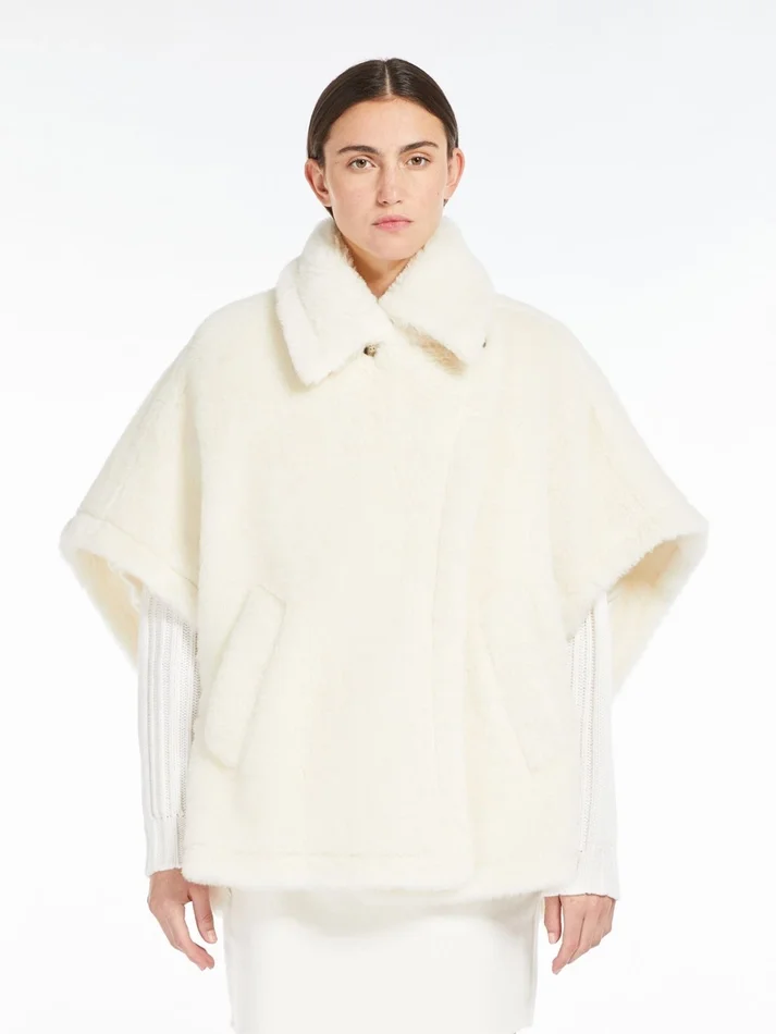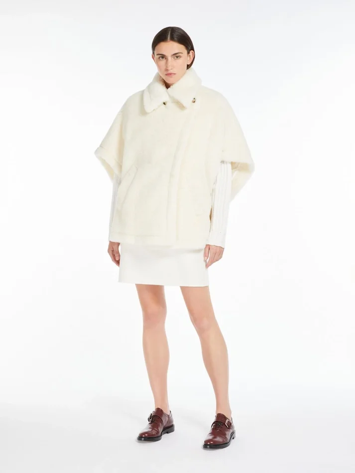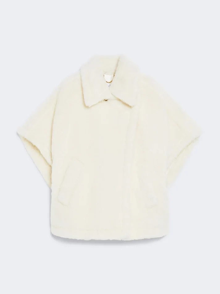 Cape in alpaca and wool teddy fabric, optical white