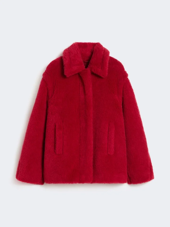 jersey fabric 62% alpaca, 26% virgin wool, 12% silk; lining 98% cupro, 1% viscose, 1% metallised fiber.