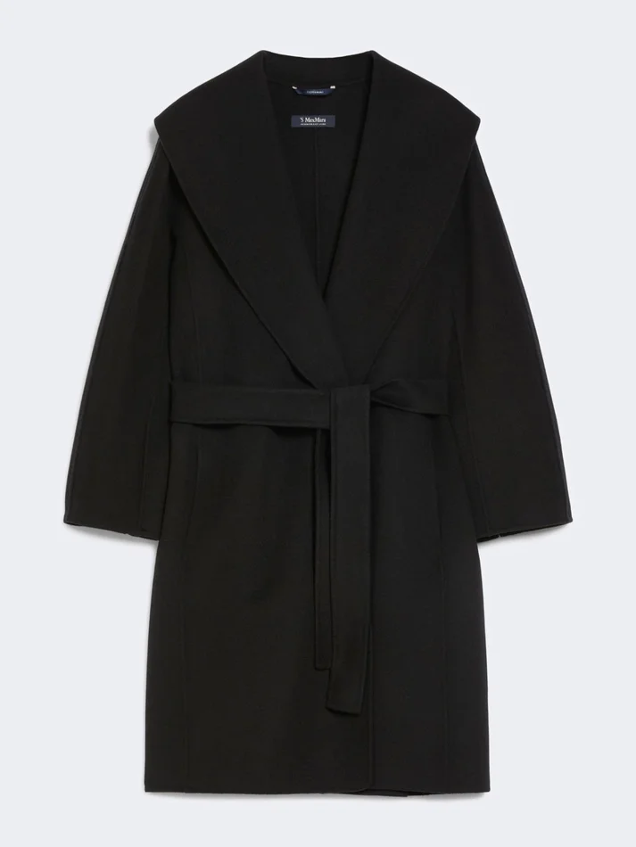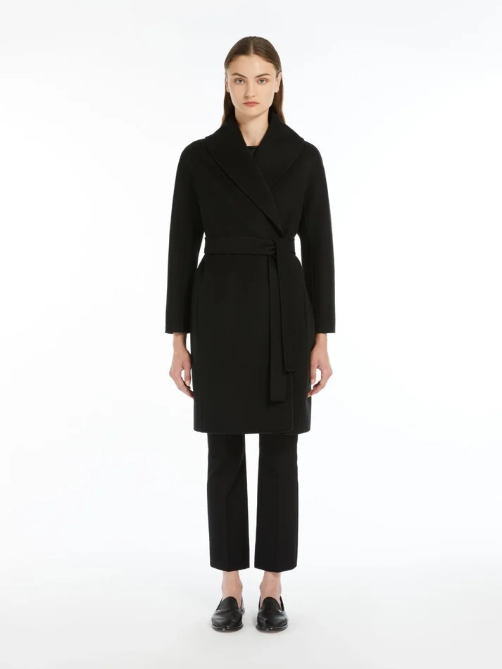 Double-faced wool robe coat, black