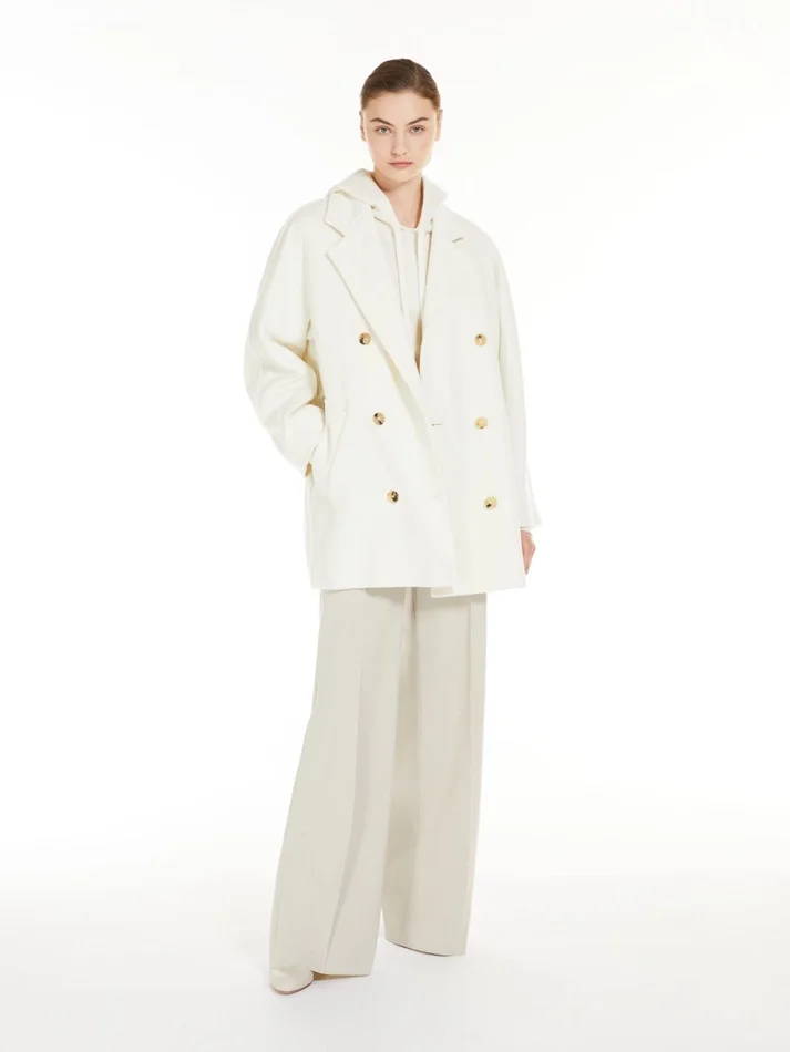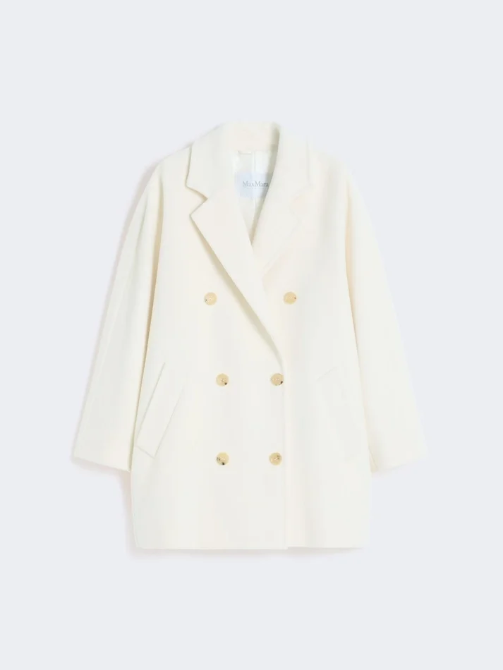 - coat in wool and cashmere beaver cloth, embellished with pick stitch