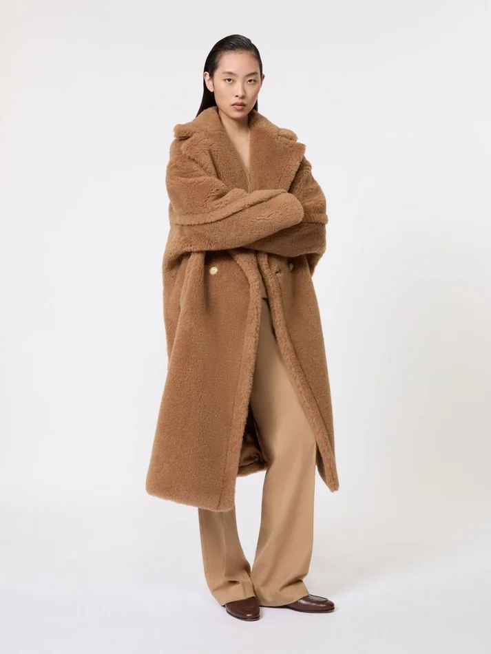 the 2013-designed teddy bear coat is inspired by an ’80s archive piece and immediately became an it-coat, loved by stars and influencers alike, thanks to its perfect alchemic concoction of glamour and playfulness. its special fabric is the result of a sophisticated technology, developed by the creative team alongside an italian supplier, which is able to produce a unique faux fur. the coat’s exuberant volume is an ode to the fabric’s opulent extravagance.
