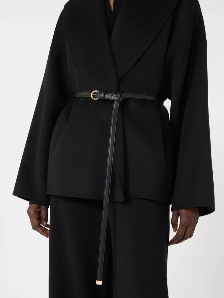 Wool, cashmere and silk robe coat, black