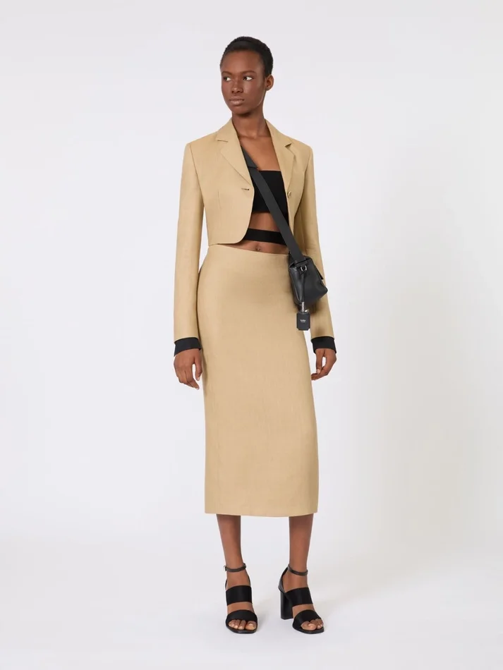 Cropped jacket in linen twill, camel
