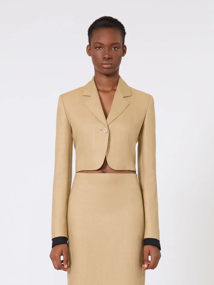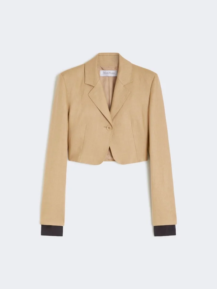 Be the first to review “Cropped jacket in linen twill, camel”