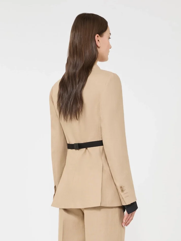 Be the first to review “Double-breasted blazer in pure linen natta, camel”