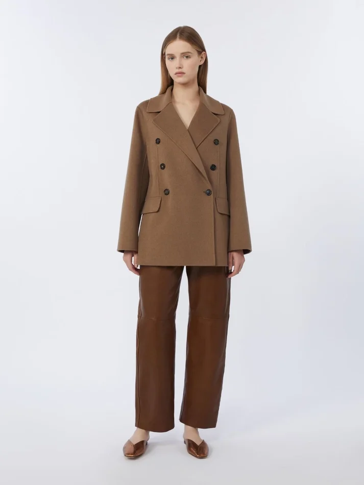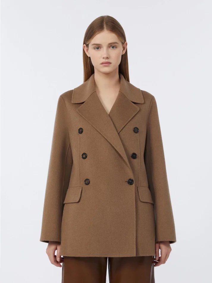 Double-breasted double-faced wool jacket, camel