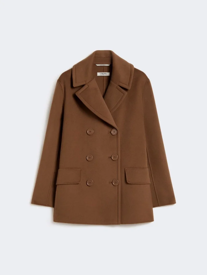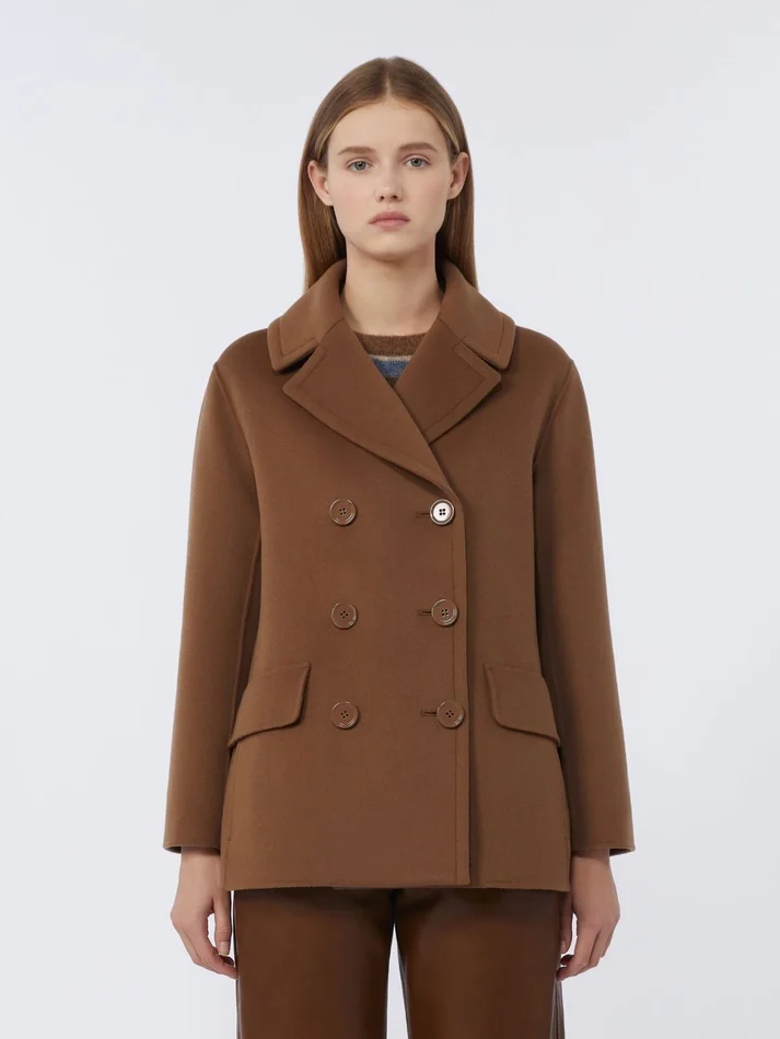 double-breasted pea-style jacket.