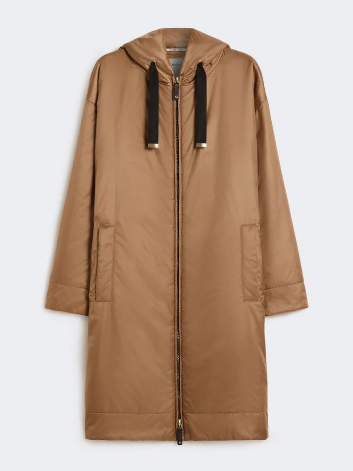 midi parka with internal drawstring at the back waist and side slits with logo snap buttons.