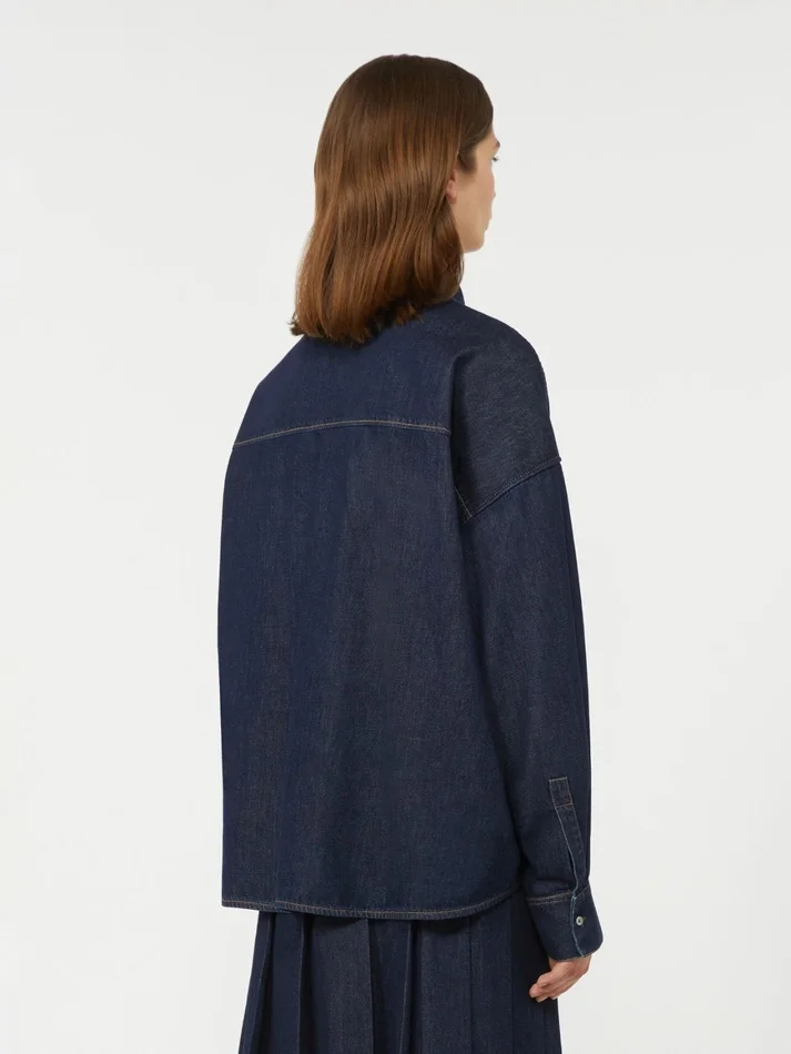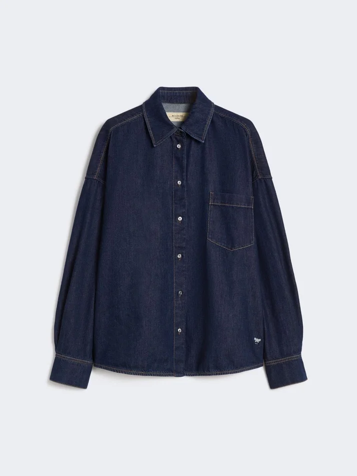 oversized shirt with classic tobacco-coloured denim-style stitching and patch pocket on the left chest.