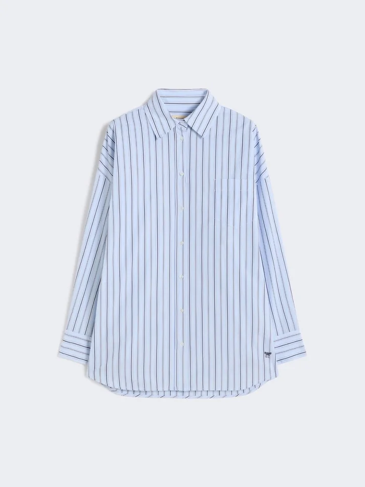 Oversized striped cotton shirt, light blue