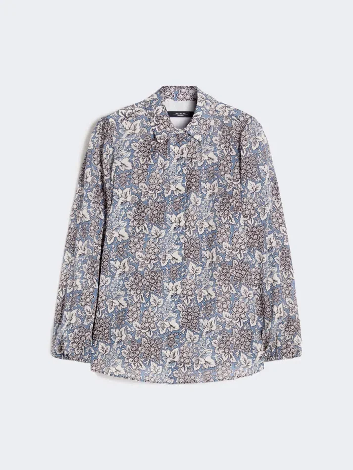 shirt with all-over printed collection motif, finished with a gathered motif on the back and shoulders.