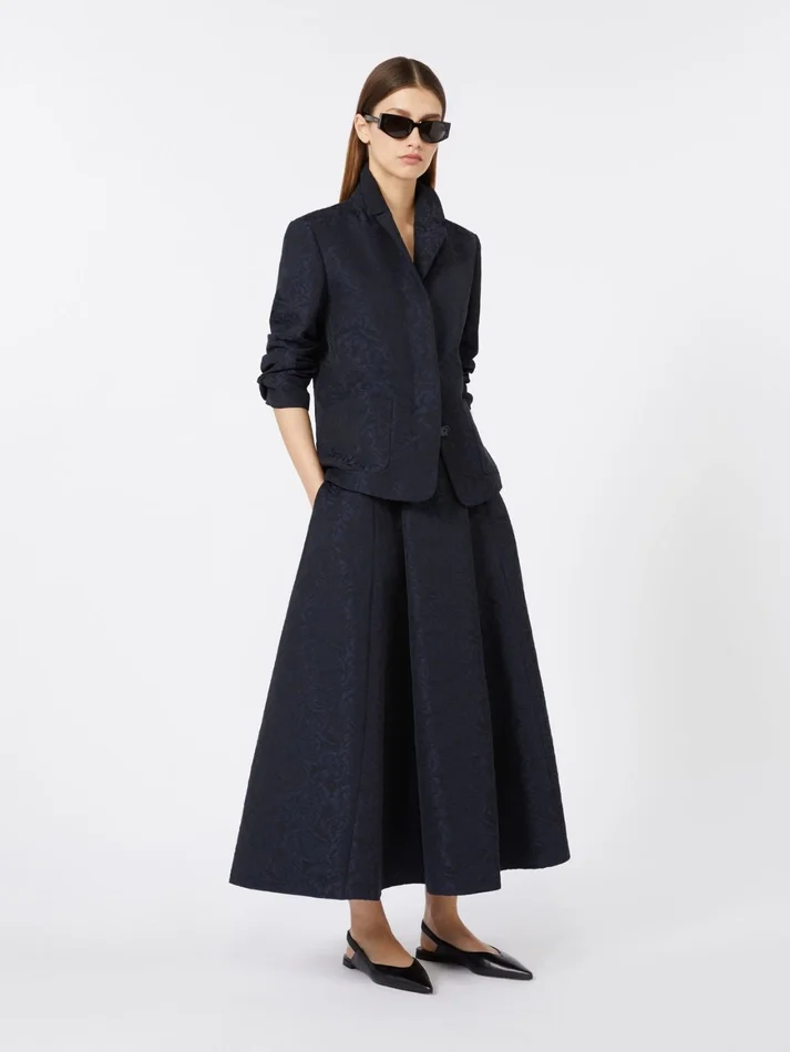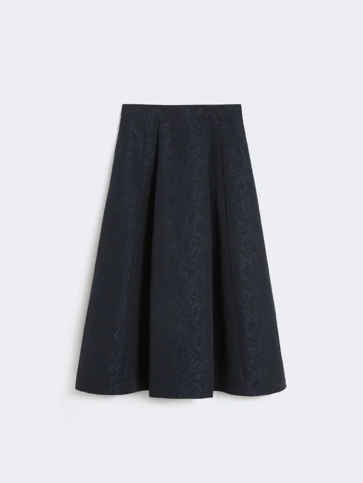 long skirt featuring pleated detail and an all-over jacquard-knit pattern.