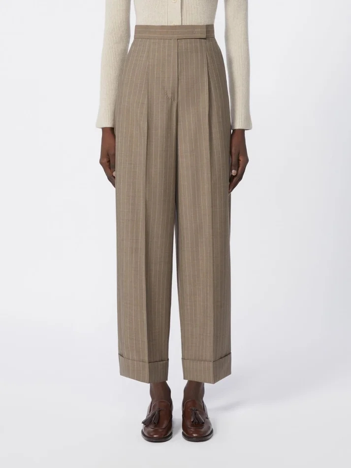 - trousers in yarn-dyed pinstripe pure woollen cloth