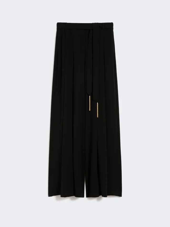 palazzo trousers featuring half-sewn pleat detail on the front which both bestows volume and creates a culotte effect.