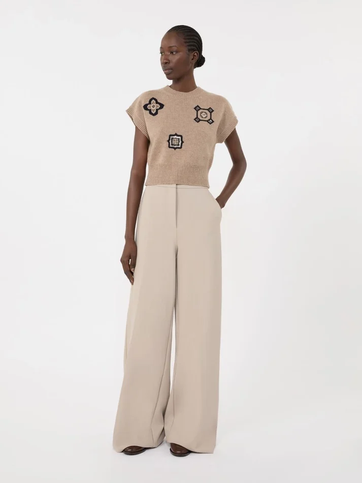 long trousers featuring tonal thread-embroidered max mara logo detail on the right-hand side of the waist.