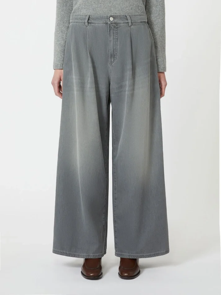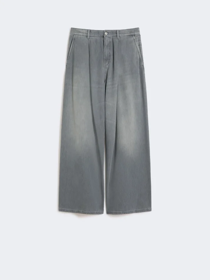 - trousers in garment-dyed cotton and viscose denim