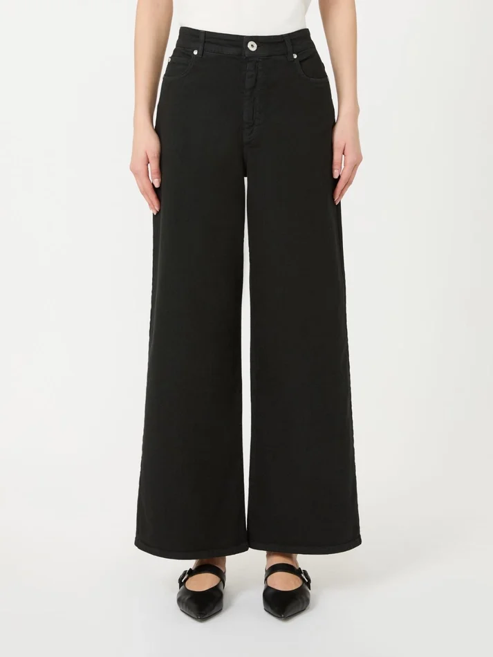 - trousers in garment-dyed stretch cotton drill fabric