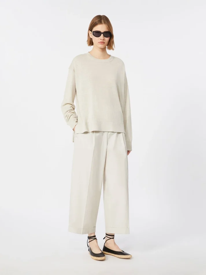 trousers featuring a wide silhouette with pleats on the front and turned-up hem.