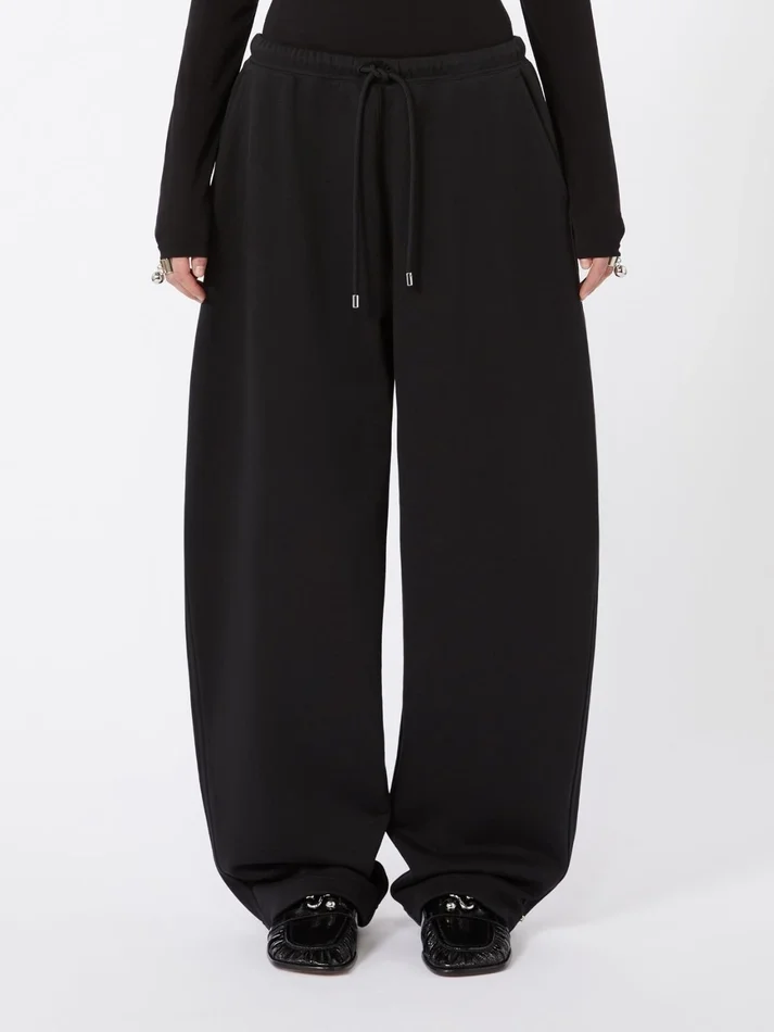 sweatpants with a soft, relaxed volume, perfect for moments of leisure or casual outings. featuring a drawstring waist and a tone-on-tone rubberized logo.