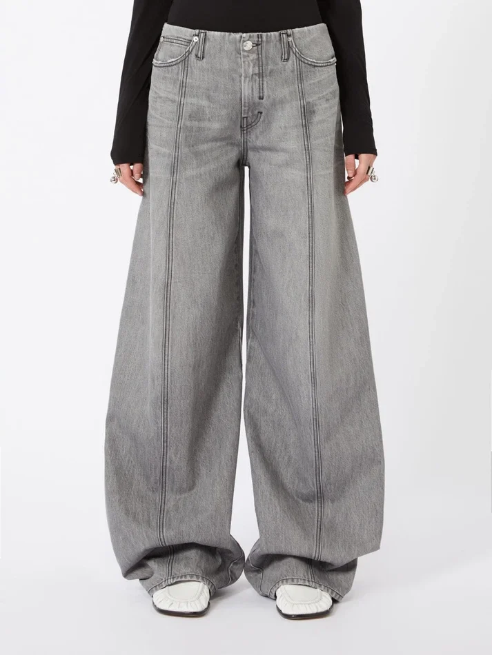 Oversized black denim trousers, black