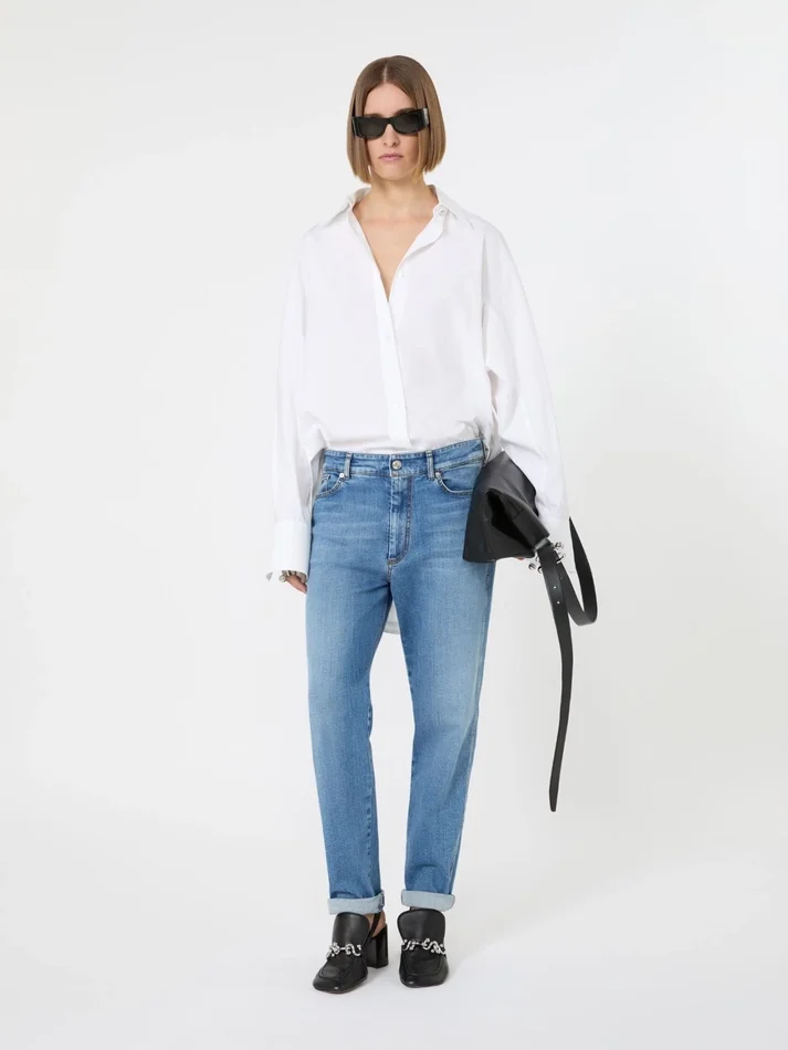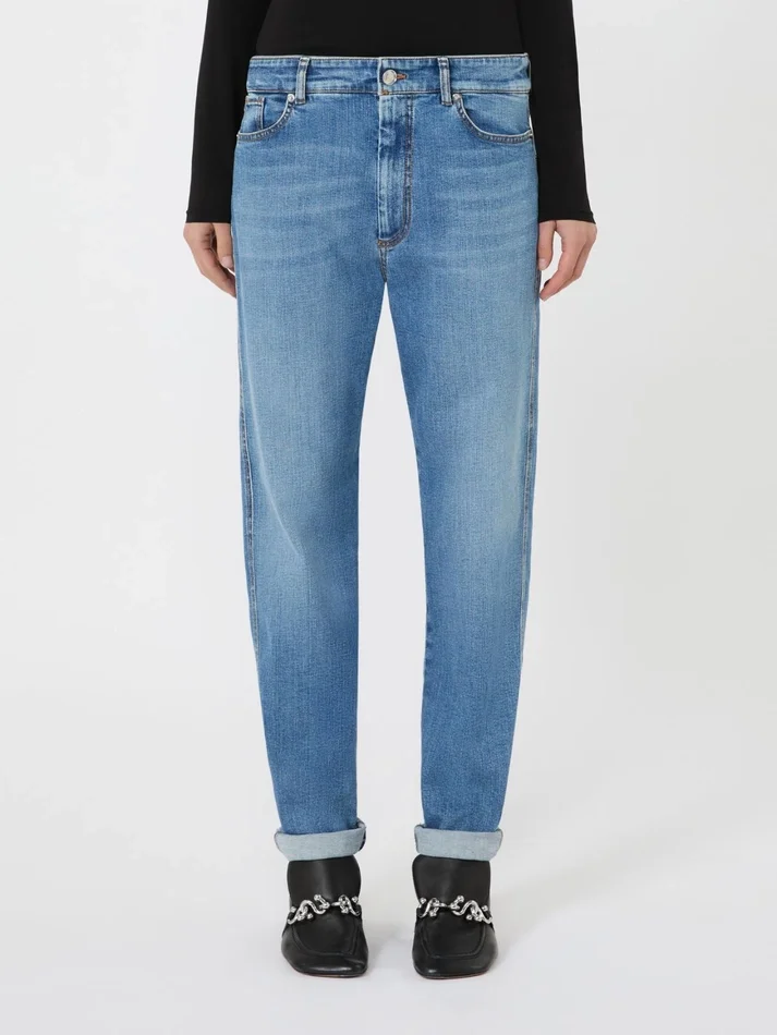 with its soft lines, the boyfriend jeans redefine a new concept of femininity. the low waist and crotch, the turned-up hem, and the personalized details on buttons, rivets, and label make them a must-have for everyday looks.