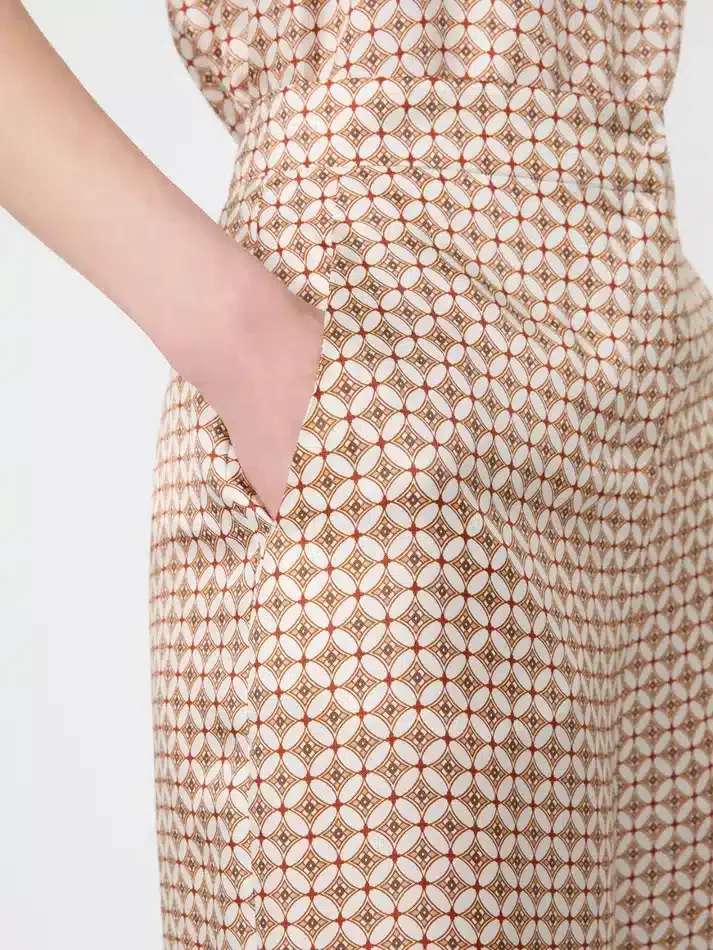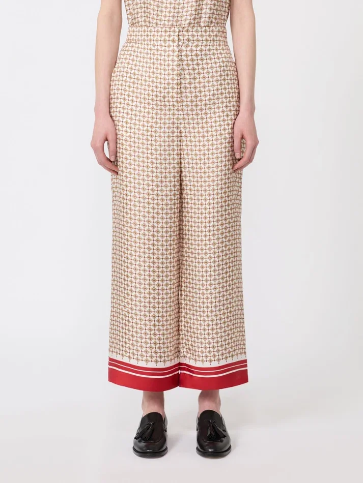wide-fit trousers featuring a cropped ankle cut and all-over scarf print detail.