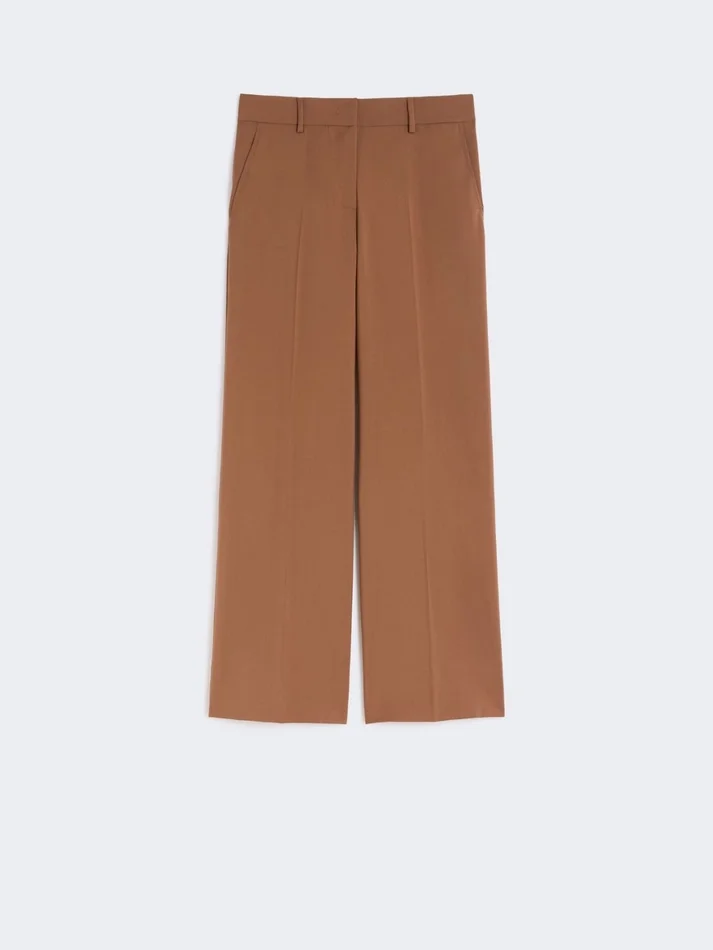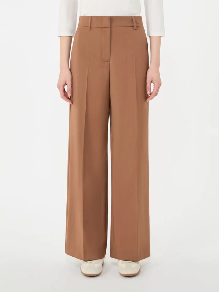 Woollen cloth palazzo trousers, tobacco